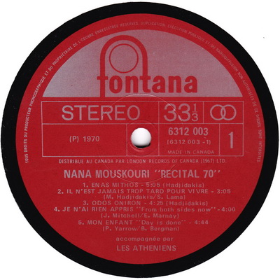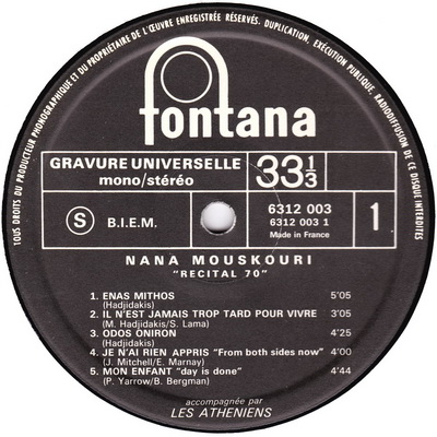 Fontana 6312 003 Made in UK 1970