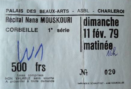 | 11.02.1979 | Charleroi | Palais des Beaux-Arts | B | Ticket | C | |||