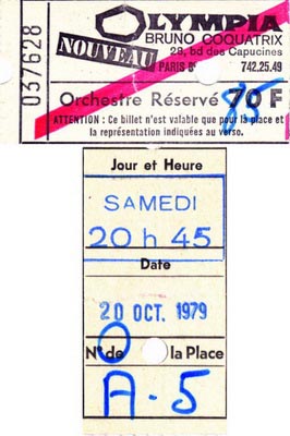| 20.10.1979 | Paris | Olympia | F | Ticket | O | |||