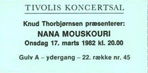 | 17.03.1982 | Kopenhagen | Tivoli Koncertsal | DK | Ticket | C | |||