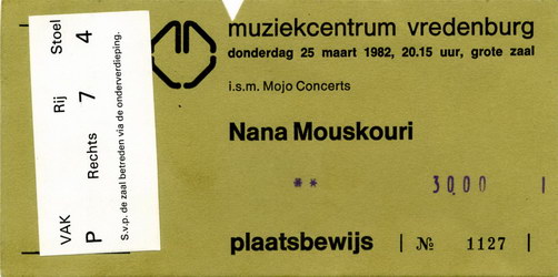| 25.03.1982 | Utrecht | Muziekcentrum Vredenburg | NL | Ticket | O | |||