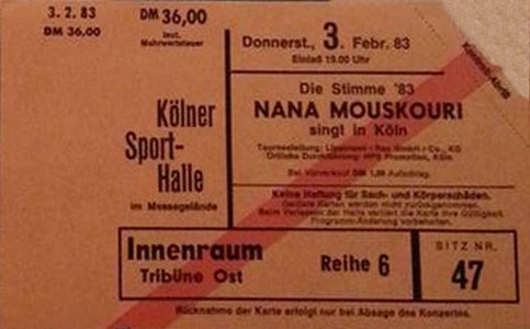 | 03.02.1983 | Köln | Sporthalle | D | Ticket | C | |||