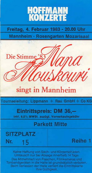 | 04.02.1983 | Mannheim | Rosengarten – Mozartsaal | D | Ticket | C | |||