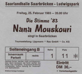 | 25.02.1983 | Saarbrücken | Saarlandhalle | D | Ticket | C | |||