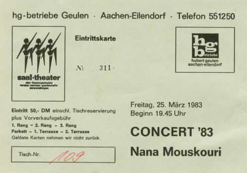 | 25.03.1983 | Aachen | Saaltheater Geulen | D | Ticket | C | |||
