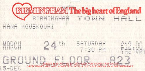 | 24.03.1990 | Birmingham | Town Hall | GB | Ticket | C | |||