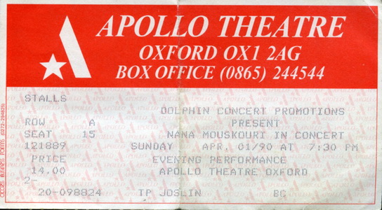 | 01.04.1990 | Oxford | Apollo Theatre | GB | Ticket | C | |||