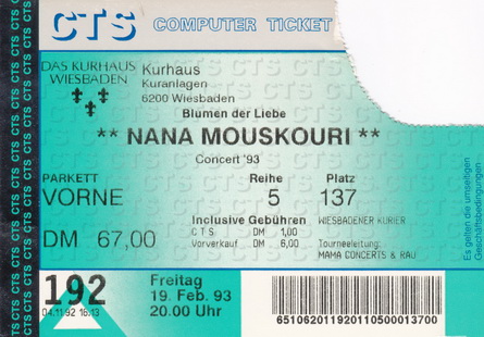 | 19.02.1993 | Wiesbaden | Kurhaus | D | Ticket | O | |||