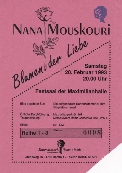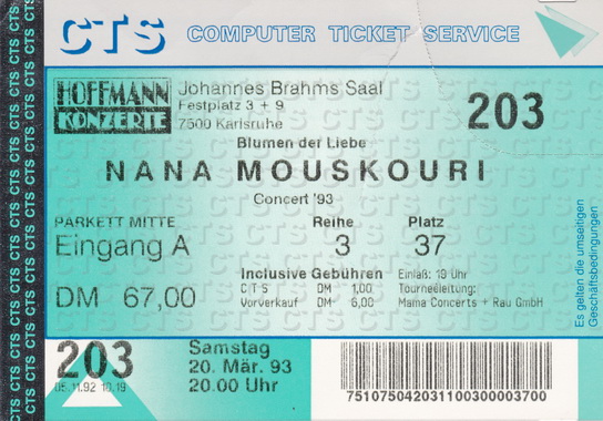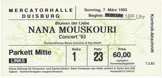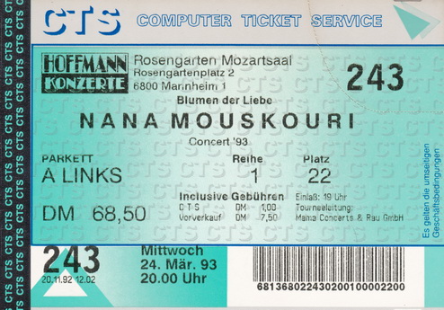 | 24.03.1993 | Mannheim | Mozartsaal | D | Ticket | O | |||