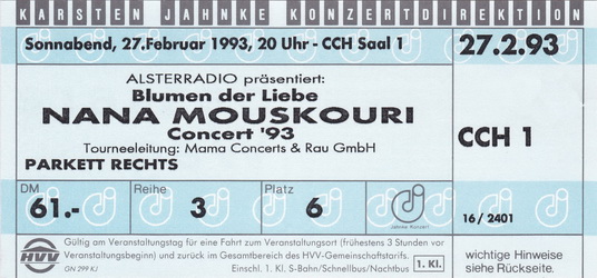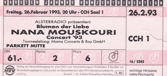 | 26.02.1993 | Hamburg | CCH | D | Ticket | O | |||