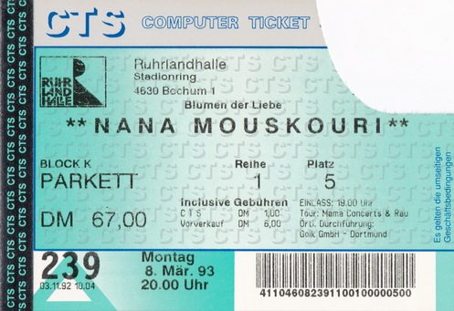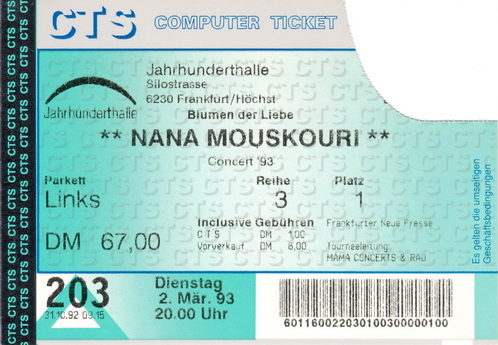 | 02.03.1993 | Frankfurt / Main | Jahrhunderthalle | D | Ticket | O | |||