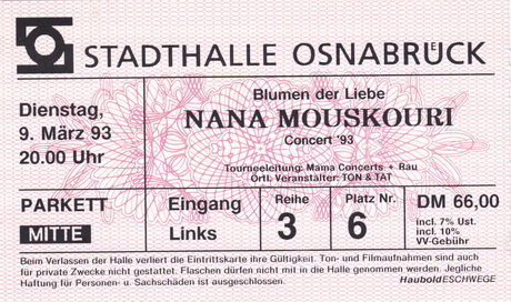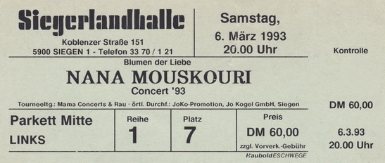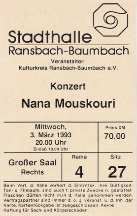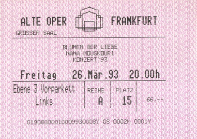 | 26.03.1993 | Frankfurt / Main | Alte Oper | D | Ticket | O | |||