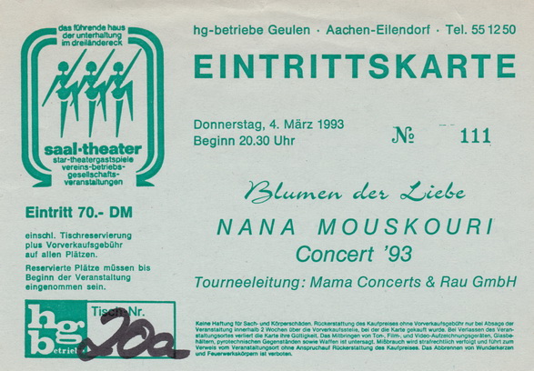 | 04.03.1993 | Aachen | Saaltheater Geulen | D | Ticket | O | |||