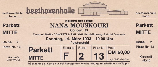 | 14.03.1993 | Bonn | Beethovenhalle | D | Ticket | O | |||