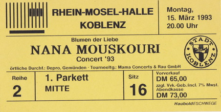 | 15.03.1993 | Koblenz | Rhein-Mosel-Halle | D | Ticket | O | |||