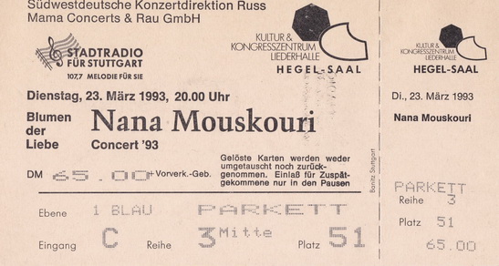 | 23.03.1993 | Stuttgart | Liederhalle, Hegel-Saal | D | Ticket | O | |||