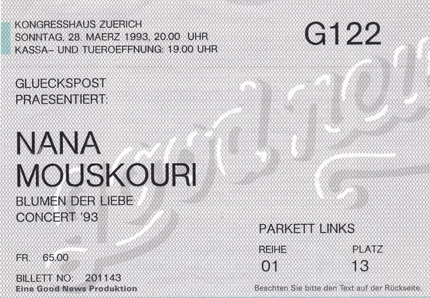 | 28.03.1993 | Zürich | Kongresshaus | CH | Ticket | O | |||