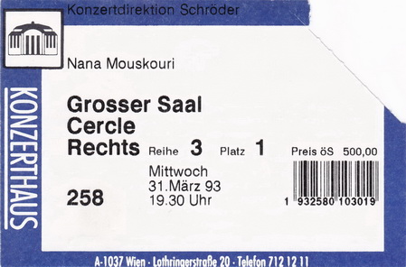 | 31.03.1993 | Wien | Konzerthaus | A | Ticket | O | |||