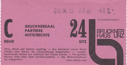 | 03.04.1993 | Linz | Brucknerhaus | A | Ticket | O | |||