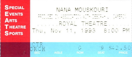 | 12.11.1993 | Victoria, BC | Royal Theatre | CDN | Ticket | C | |||