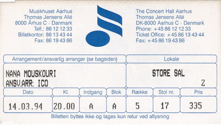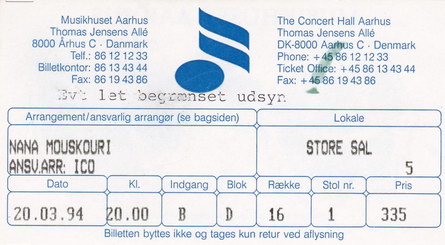| 20.03.1994 | Aarhus | Musikhuset | DK | Ticket | O | |||