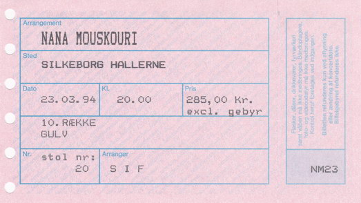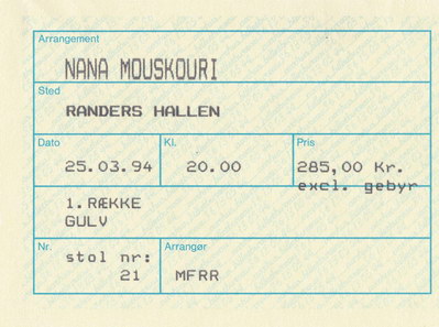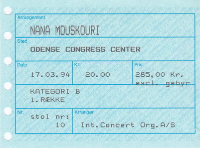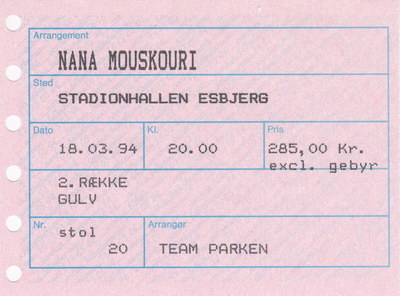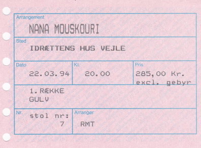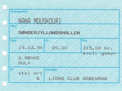 | 30.03.1994 | Kopenhagen | Tivoli | DK | Ticket | O | |||