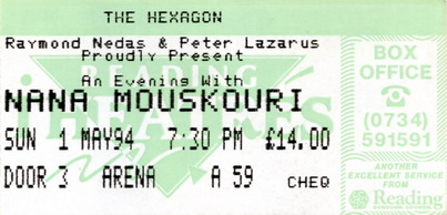 | 01.05.1994 | Reading | The Hexagon | GB | Ticket | O | |||