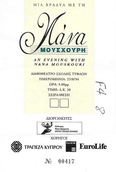 | 27.08.1994 | Limassol | Archaio Theatro Kouriou | CY | Ticket | O | |||