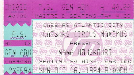 | 11.09.1994 | Devon, PA | Valley Forge Music Fair | USA | |||||