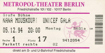 | 05.12.1994 | Berlin | Metropol Theater | D | Ticket | O | |||