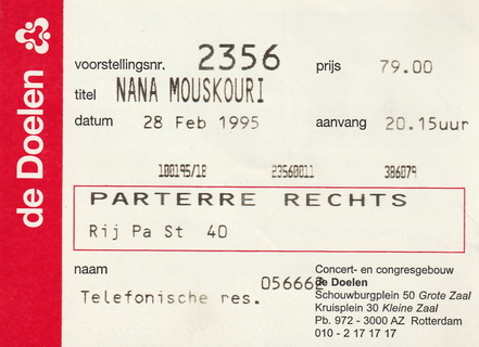 | 28.02.1995 | Rotterdam | De Doelen | NL | Ticket | O | |||