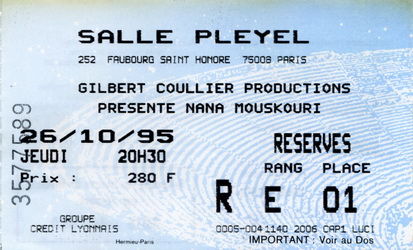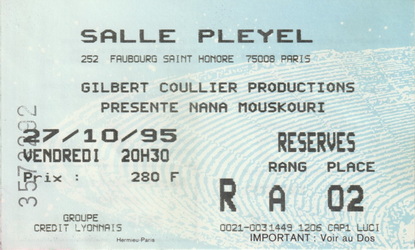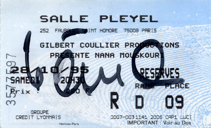 | 27.10.1995 | Paris | Salle Pleyel | F | Ticket | O | |||