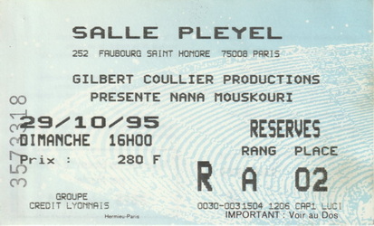 | 28.10.1995 | Paris | Salle Pleyel | F | Ticket | O | |||