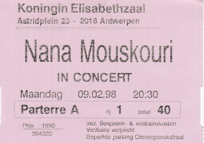 | 09.02.1998 | Anvers / Antwerpen | Koenigin Elisabeth Theatre | B | Ticket | O | |||