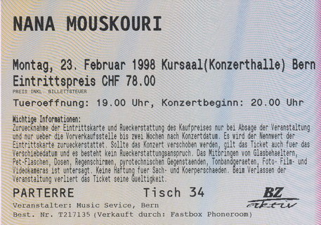 | 23.02.1998 | Bern | Kursaal | CH | Ticket | O | |||