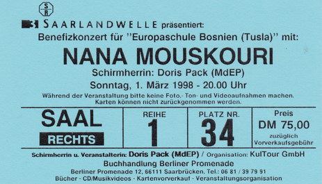 | 25.06.1998 | Athens / Athen (Benefiz Konzert Melina Mercouri) |