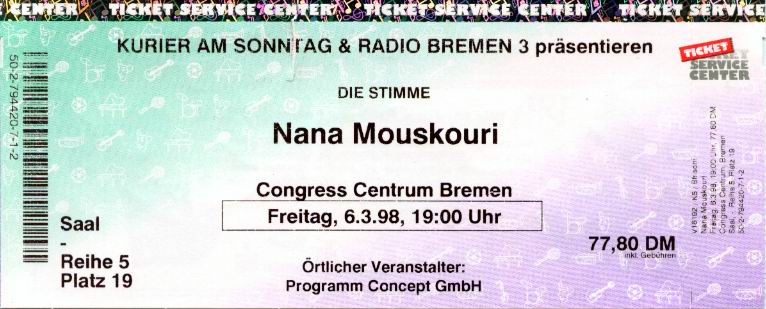 | 06.03.1998 | Bremen | CCB | D | Ticket | O | |||