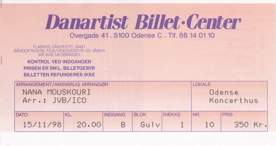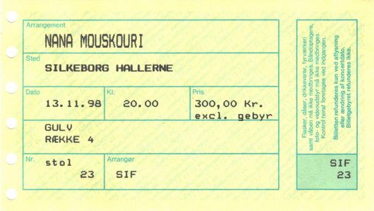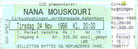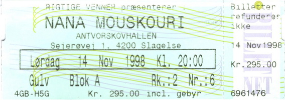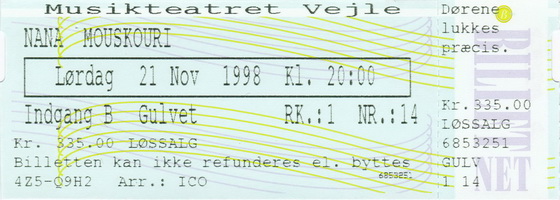 | 18.11.1998 | Vejle | Musikteatret | DK | Ticket | O | |||
