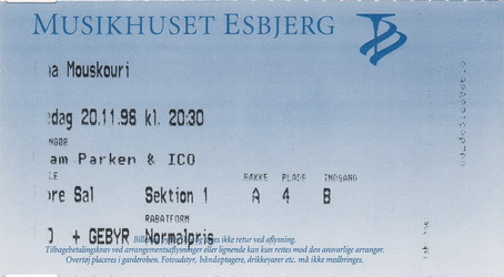 | 20.11.1998 | Esbjerg | Musikhuset | DK | Ticket | O | |||