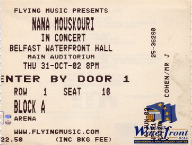 | 31.10.2002 | Belfast | Waterfront Hall | GB | Ticket | C | |||