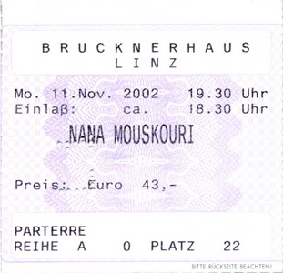 | 11.11.2002 | Linz | Brucknerhaus | A | Ticket | O | |||