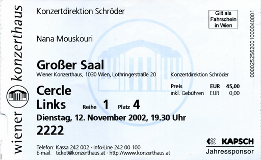 | 12.11.2002 | Wien | Konzerthaus | A | Ticket | O | |||