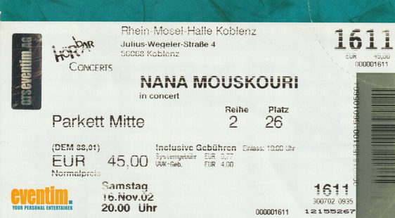 | 16.11.2002 | Koblenz | Rhein-Mosel-Halle | D | Ticket | O | |||