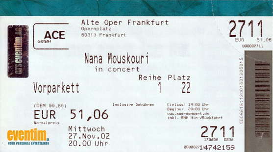 | 27.11.2002 | Frankfurt | Alte Oper | D | Ticket | O | |||