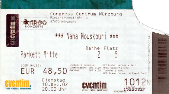 | 10.12.2002 | Würzburg | Congress Centrum Würzburg (CCW) | D | Ticket | O | |||