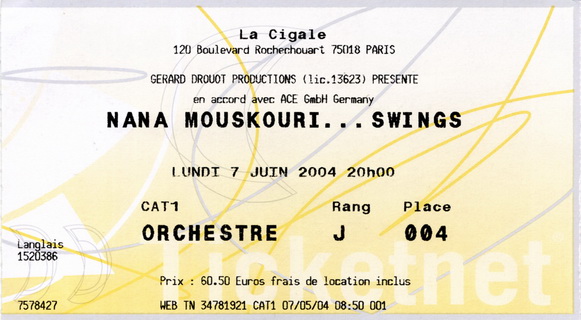 | 07.06.2004 | Paris | La Cigale (Jazzkonzert) | F | Ticket | O | |||