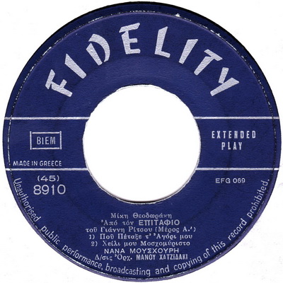 Cheli mou moskomiristo Mikis Theodorakis/ Jiannis Ritsos / Manos Hadjidakis