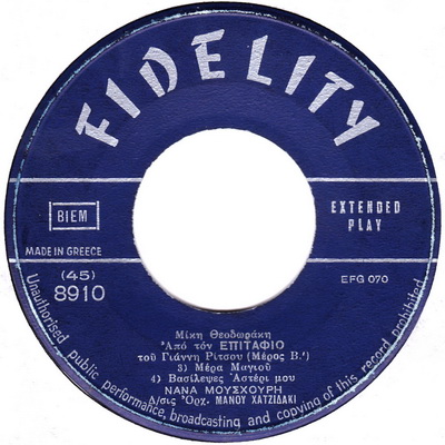Vasilepses asteri mou Mikis Theodorakis/ Jiannis Ritsos / Manos Hadjidakis