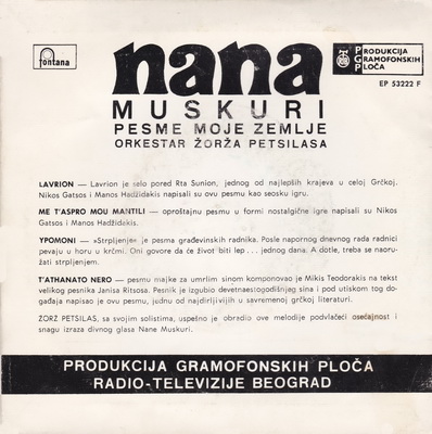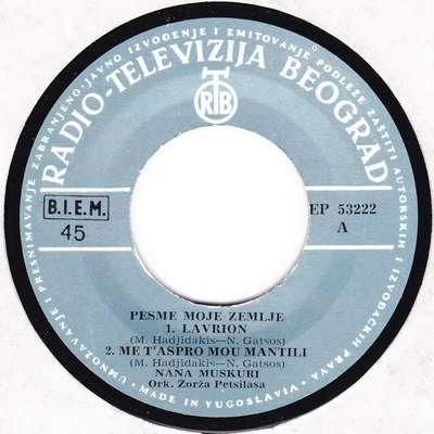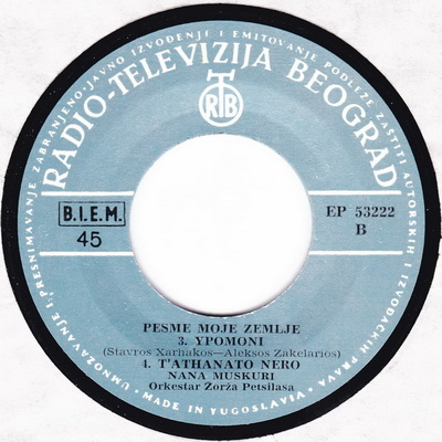 RTBeograd EP 53222 F Made in Yugoslavia 1966