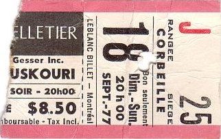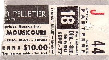 | 03.09.1977 | Montréal, QC | Place des Arts - Salle Wilfrid-Pelletier (16:00) | CDN | Ticket | C | |||